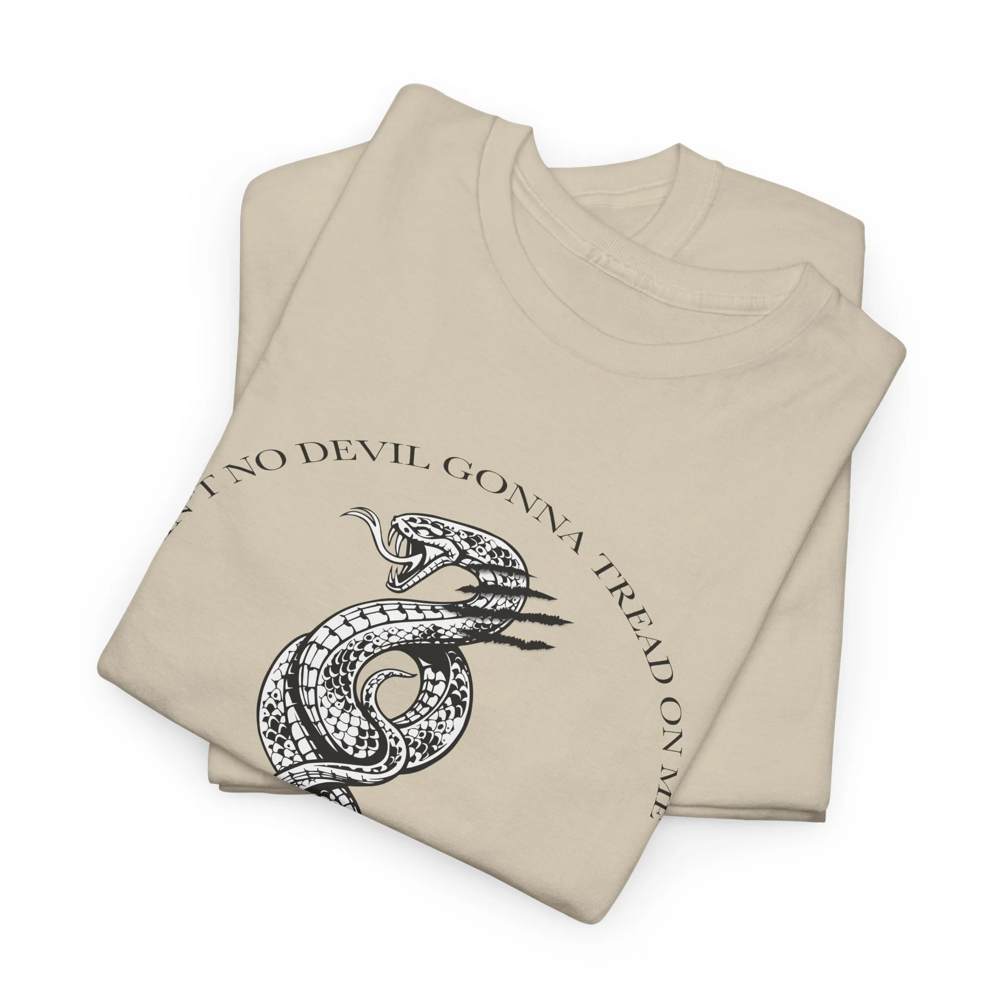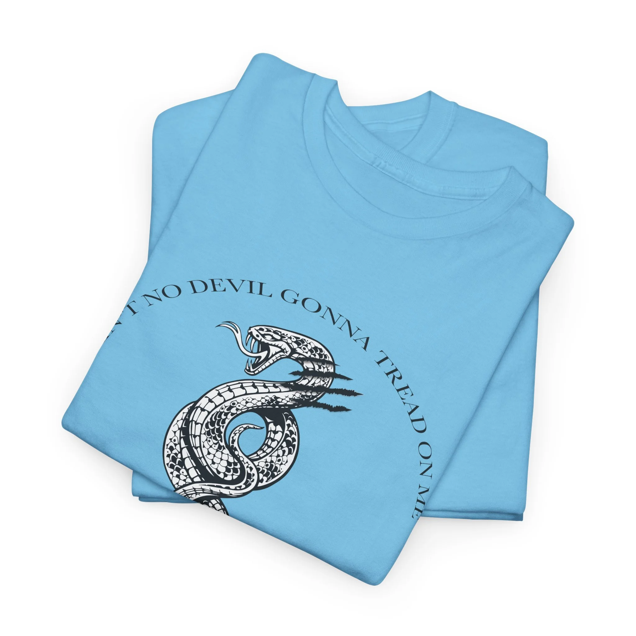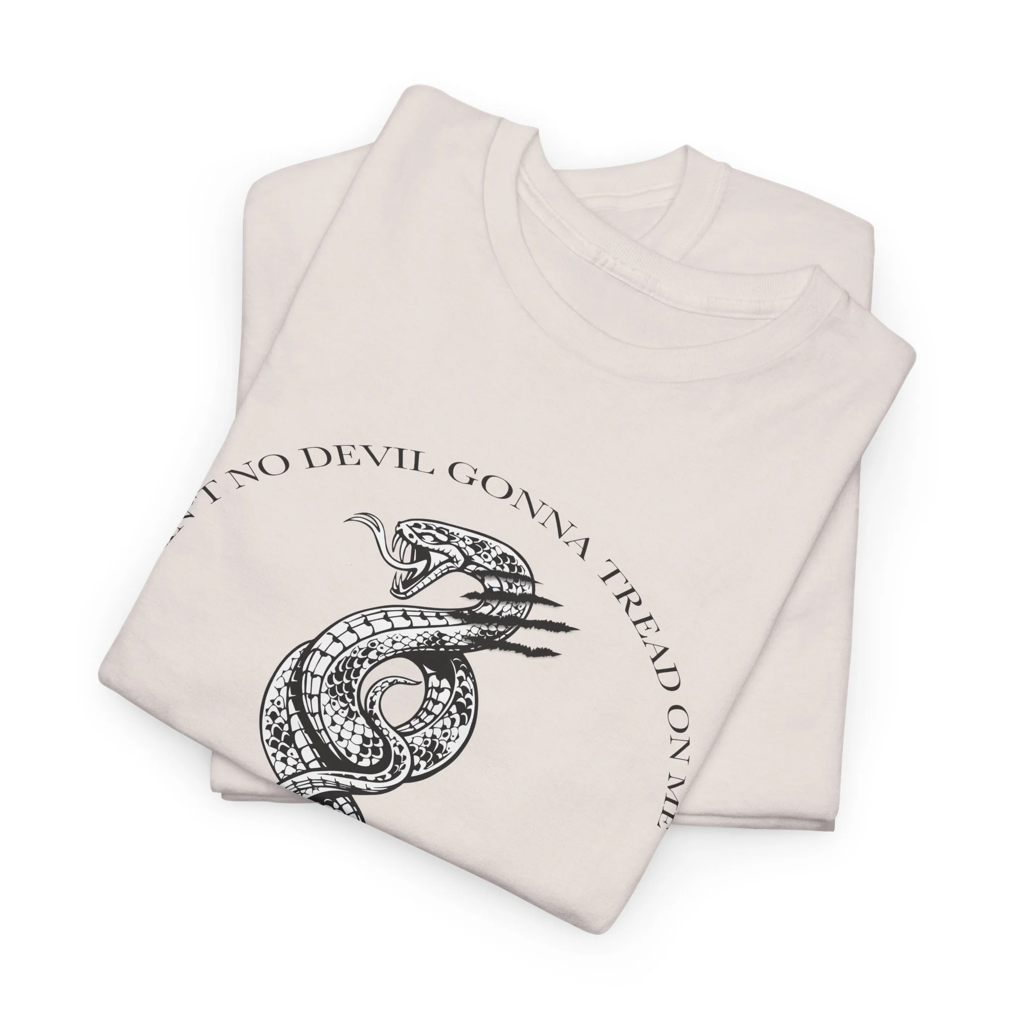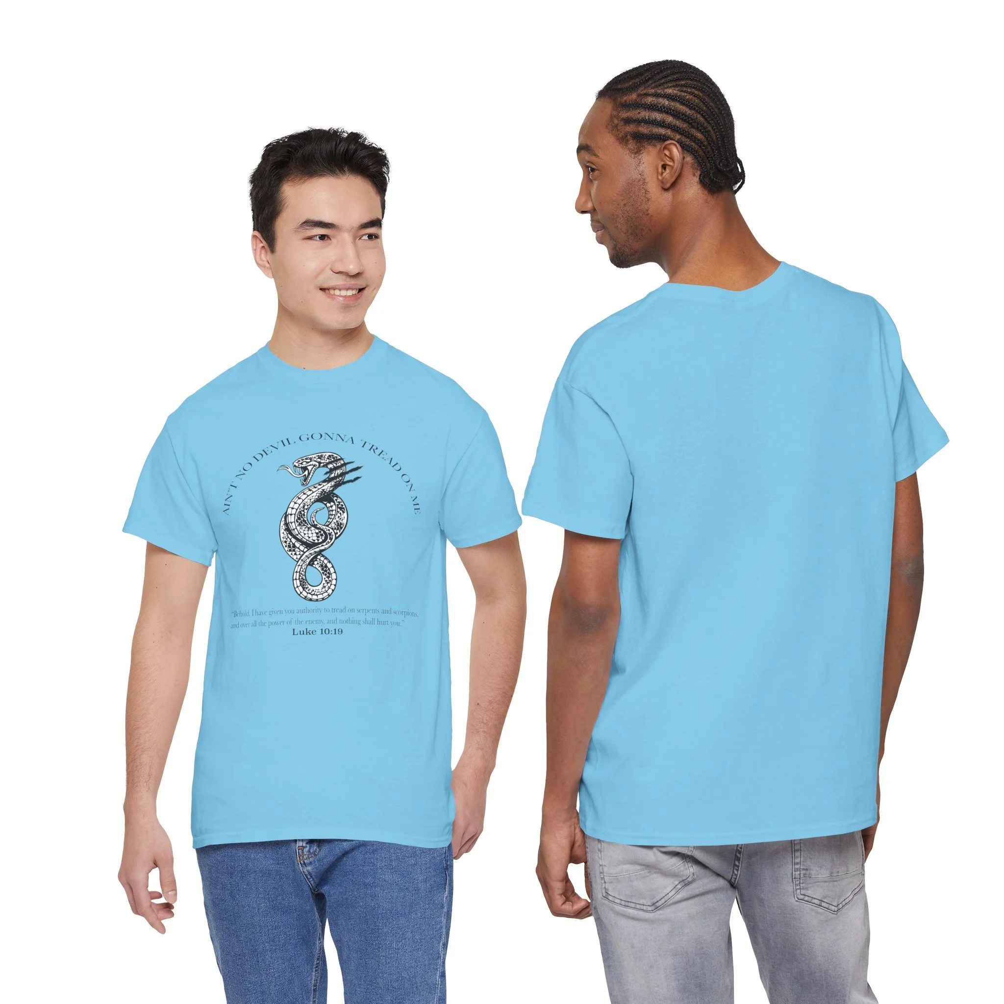 This soft, breathable, classic tee carries a hand-drawn serpent illustration as a reminder that the enemy cannot touch us. The shirt feels light against the skin and holds its shape through washes, so the artwork stays crisp and readable.