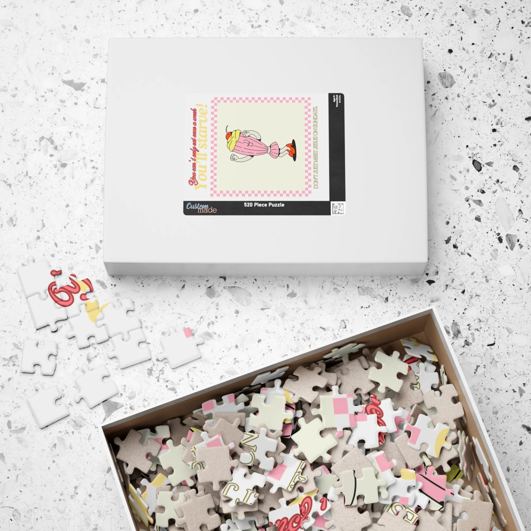 Piece together a cheeky, retro-inspired scene that feels like a found postcard from a pastel diner. This puzzle features a smiling vintage milkshake character framed by a pink checkerboard border and playful, slightly sassy lettering. As you fit the bright, glossy pieces together you’ll rediscover small details and the soft, candy-colored palette. The sturdy 100% chipboard pieces have a satisfying snap and a laminated finish that keeps the artwork vivid through multiple sessions. Whether you work it solo for a calm afternoon or set it out during a low-key gathering, the image invites lighthearted conversation and a touch of nostalgic humor.
