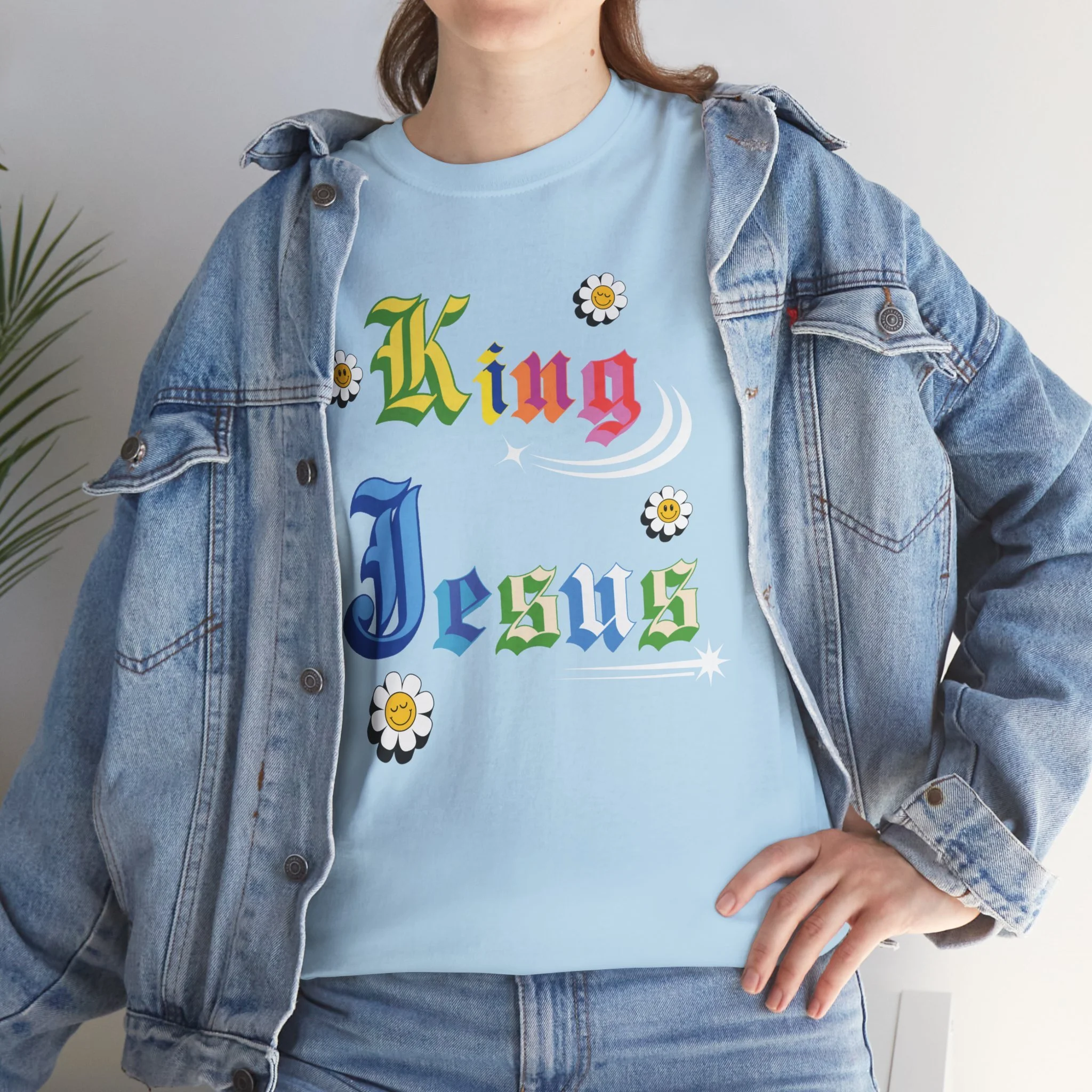 "King Jesus" was my first design. I entered it into a fine arts ag competition which was the start of my business. This t-shirt is the start of Jewel Deisgns and my reminder everyday to keep going forward not only with my business but also with my faith. It has reached so many hearts and entered so many wardrobes.